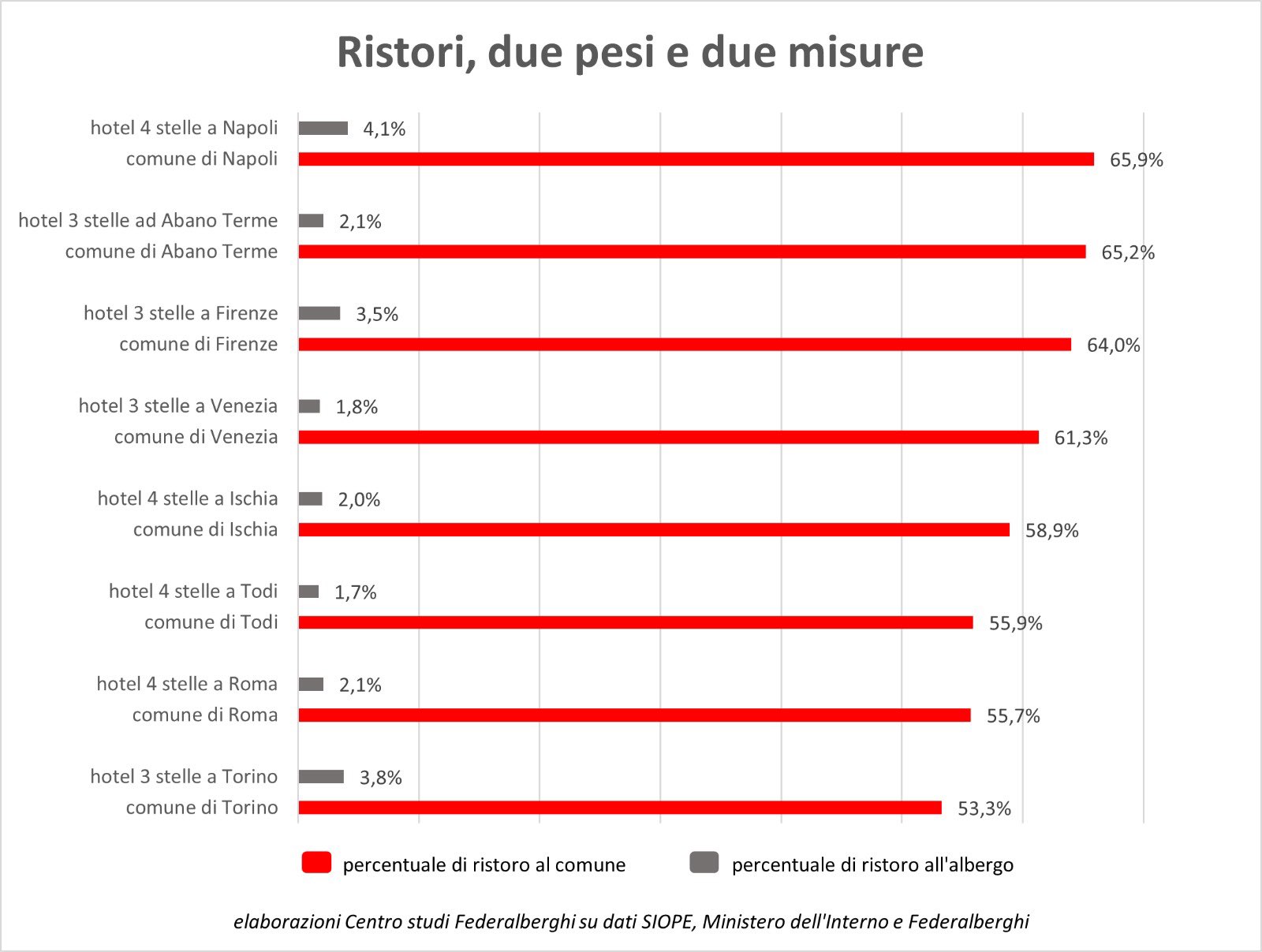I Comuni sono stati rimborsati dallo Stato per il mancato gettito dell’imposta di soggiorno. Agli albergatori sono state date le briciole. Urgente il "Ristori Quinquies”.